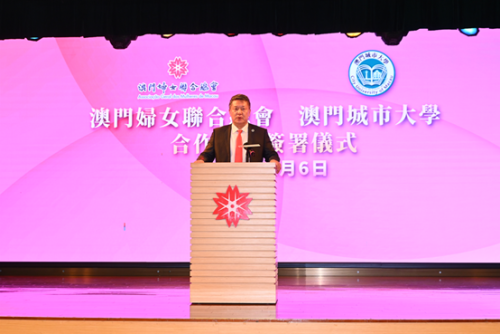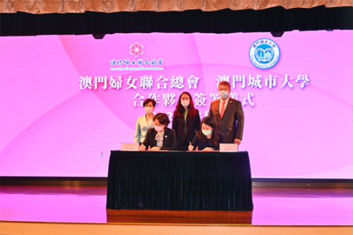 澳門城市大學與澳門婦女聯合總會合作備忘錄簽署儀式於6日在婦聯綜合服務大樓舉行。在澳門中聯辦社會工作部處長費春燕、城大校長劉駿、婦聯會長劉金玲等領導的見證下,城大協理副校長陳倩雯、婦聯理事長袁小菱代表雙方簽署合作備忘錄,以促進雙方的合作夥伴關係,於六個主要領域達成共識,包括開展聯合研究項目、組織研討會和學術會議、交流學術資訊、合作開展社會服務、提供實習機會和社會工作培訓等,推動實現優勢互補、共同發展,為雙方共同推動社會實踐、學術研究和人才培訓等工作奠定基礎。