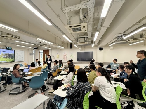 本次課程的核心環節採用「三方角色」模式,學生分組扮演甲方企業代表、乙方EAP服務提供商及觀察員,在模擬競標、需求調研、方案設計等場景中展開多輪互動。過程中,學生積極討論、腦力激盪,分析對方組別的考量,不僅體驗職場談判的節奏與壓力,更學會以數據支撐觀點、以傾聽促進共識。在圓桌會議階段,張東航博士透過查閱學生貼於「靈感區、疑問區、共識區」的便籤,總結此次沉浸式學習成果。楊波先生與馮仕敏女士再次強調談判技巧,啟發學生多維度思考、突破舒適圈。同時,馮女士也提到,觀察員的角色至關重要,需從洞察中學習,從疑問中反思,從靈感中創新。
