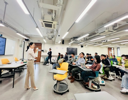 課程伊始,張東航博士透過正念練習幫助學生調整狀態,迅速進入學習情境。隨後,楊波先生結合其多年職場經驗,深入淺出地講解教練技術的核心要點,並解析如何透過有效提問引導對話,傳遞顧問式銷售技巧。他帶領學生區分封閉式與開放式問題,強調「提問的藝術」在職場溝通中的關鍵作用,以問促思,讓學生深刻體會主動思考的價值。馮仕敏女士則從財務視角出發,以學生熟悉的加油站營利案例為切入點, 指出財務報告不僅呈現「數字」,更隱含「因果」與「邏輯」,引導學生層層剖析企業決策背後的思維框架,為後續模擬諮詢環節奠定基礎。