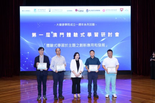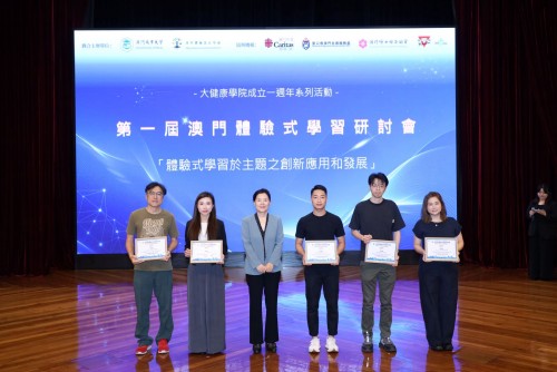 由澳門城市大學大健康學院與澳門體驗教育學會聯合主辦的首屆澳門體驗式學習研討會日前於城大氹仔校區文化中心舉辦。中央政府駐澳門特別行政區聯絡辦公室教育與青年工作部高校處處長岑嘉儀、澳門社會工作局研究及規劃廳專業發展及計劃處代處長關靄婷、城大副校長韓蔚等出席開幕典禮。本次研討會由澳門五間社會服務機構擔任支持單位,包括澳門明愛、澳門基督教青年會、聖公會澳門社會服務處、澳門婦女聯合總會及鮑思高青年服務網絡。
